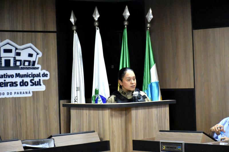 Na oportunidade, a policial apresentou dados relacionados ao município de Laranjeiras do Sul, explicou o que caracteriza a violência contra a mulher e reforçou a importância de denunciar qualquer tipo de agressão. Ela também colocou a Patrulha Maria da Penha à disposição das pessoas que sofrem violência e destacou o papel da Procuradoria da Mulher, implantada na Câmara de Vereadores, tendo a vereadora Janice Couto como procuradora da Mulher no Legislativo.
