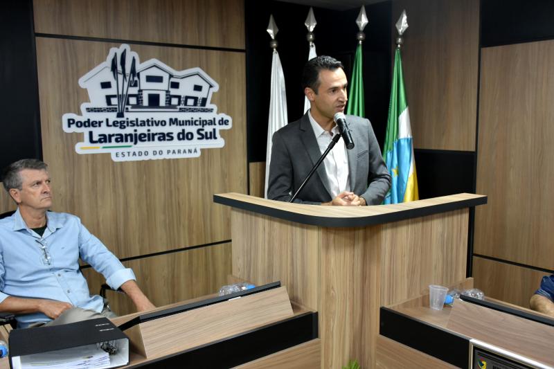 Outro destaque da sessão foi a participação do professor Fabio Luiz Zaneratti, diretor da Universidade Federal da Fronteira Sul (UFFS) – Campus de Laranjeiras do Sul, durante o Grande Expediente. Na ocasião, ele apresentou o planejamento da instituição para a possível implantação de novos cursos no município, incluindo Direito e Ciências da Computação com ênfase em Inteligência Artificial.