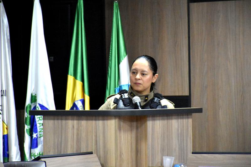 Na oportunidade, a policial apresentou dados relacionados ao município de Laranjeiras do Sul, explicou o que caracteriza a violência contra a mulher e reforçou a importância de denunciar qualquer tipo de agressão. Ela também colocou a Patrulha Maria da Penha à disposição das pessoas que sofrem violência e destacou o papel da Procuradoria da Mulher, implantada na Câmara de Vereadores, tendo a vereadora Janice Couto como procuradora da Mulher no Legislativo.