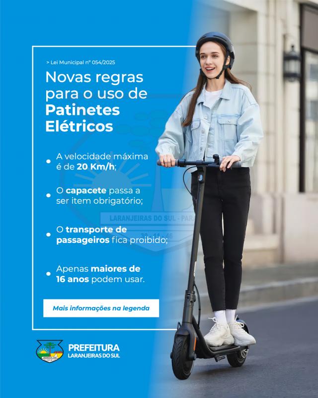 Laranjeiras do Sul regulamenta uso de Patinetes Elétricos após aprovação unânime do Projeto de Lei 009/2025